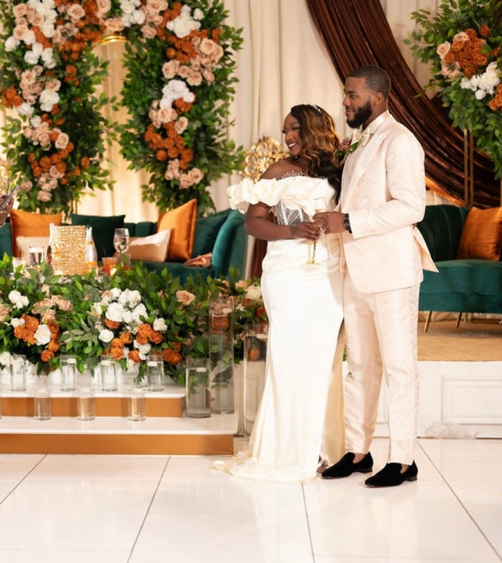 At your consultation, the designer will then create a live sketch to help you visualize your concept. Additionally, she will provide guidance as you explore various fabric options and silhouettes that best enhance your individuality.